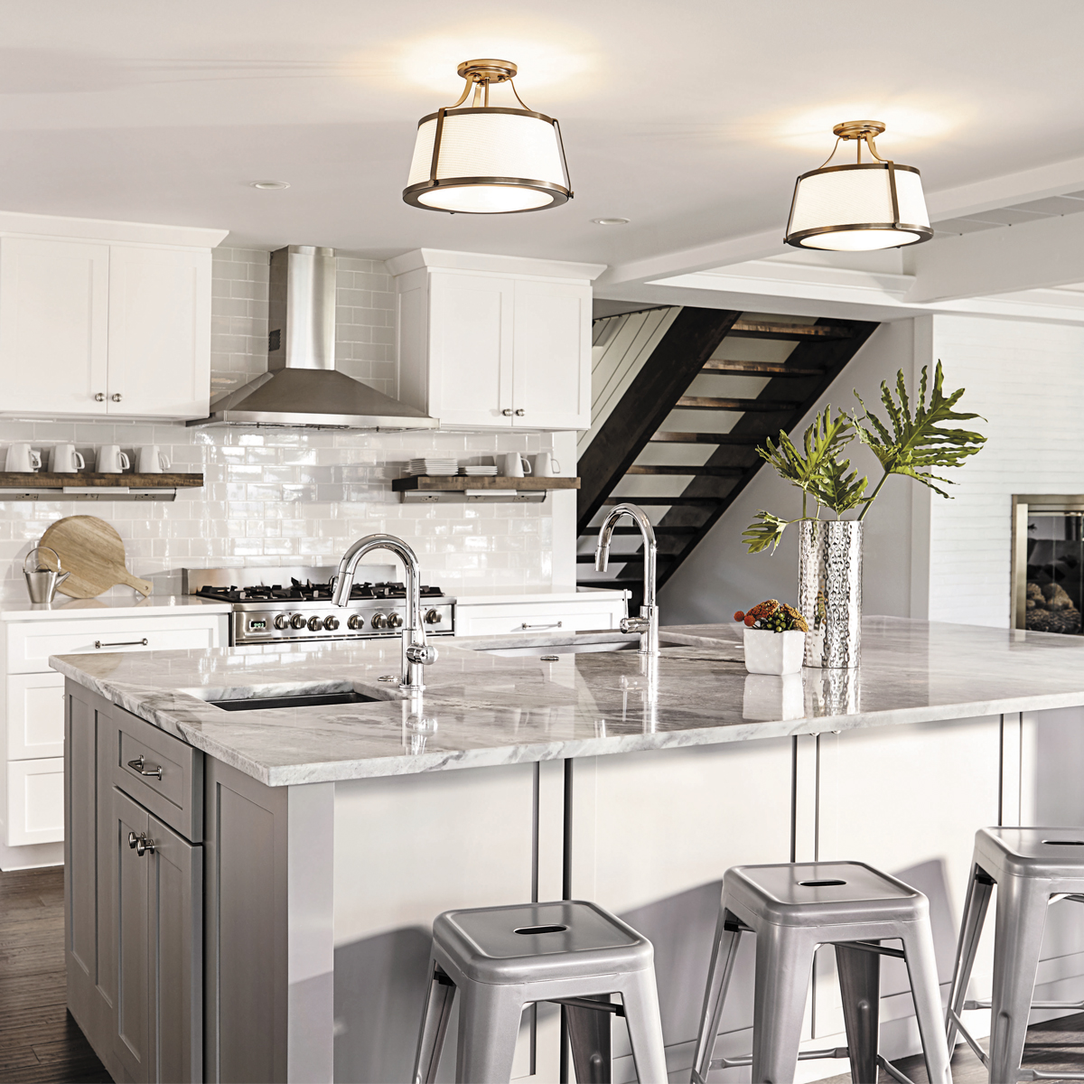 Потолочный светильник Elstead Lighting HK-CHARLOTTE-SF-BC. Простота, продуманность и винтажное настроение. Для классического абажура дизайнеры выбрали палево-белую ткань с богатой текстурой. Она идеально сочетается с основательными металлическими креплениями и выгнутым стеклом диффузора. Основание в цвете - Латунь. Идеально подойдет для освещения гостинной, кабинета, кухни, прихожей, спальни, столовой, детской.