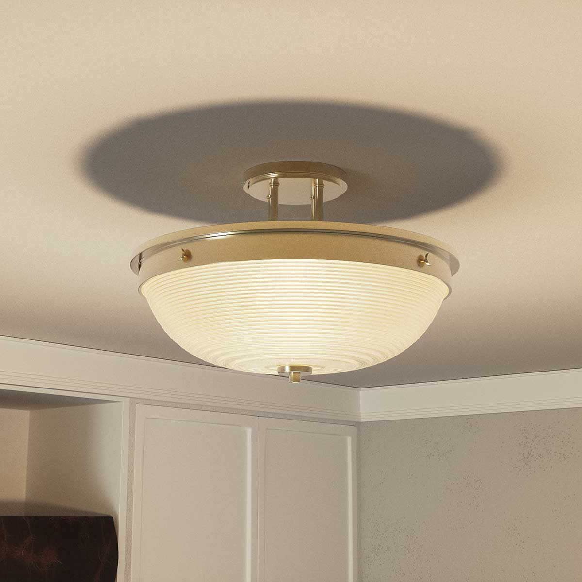 Потолочный светильник Elstead Lighting QZ-MANTLE-SF-WS. Светильник украшен великолепным стеклянным плафоном в виде купола. Основание выполнено в отделке - Латунь. Подходит для освещения гостинной, кабинета, кухни, прихожей, спальни, столовой, детской.