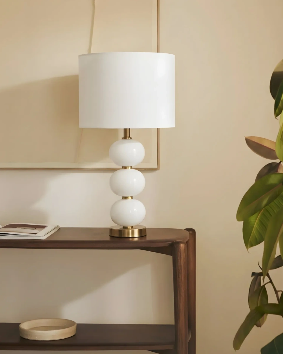 Белая настольная лампа "Райс" - это удобное и стильное решение для освещения вашего рабочего стола или комнаты. Она состоит из трех стеклянных сфер, которые собраны вместе, как бусы на ожерелье. Это создает интересный и оригинальный дизайн, который будет привлекать внимание гостей. Белый цилиндрический абажур дополняет общий вид лампы. Лампа "Райс" идеально подойдет для использования на прикроватном столике или консоли. Она обеспечит мягкое и приятное освещение, создавая уютную атмосферу в комнате. Кроме того, лампа “Райс” оснащена USB-портом на задней стороне базы, что позволяет вам также подключить устройства кабелем для зарядки. Благодаря своей компактности и стильному дизайну, она легко впишется в любой интерьер, будь то спальня, гостиная или кабинет.