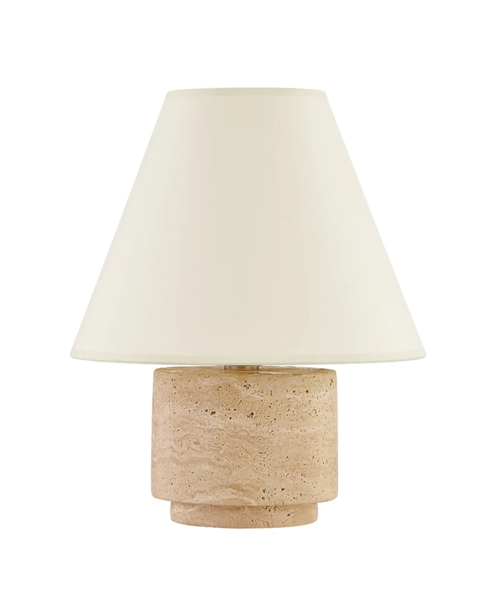 Бежевая настольная лампа "Бронко" из травертина - это элегантный светильник, сочетающий простоту форм и натуральность материалов. Основание выполнено из натурального травертина с характерной природной текстурой, которая делает каждый экземпляр уникальным. Конусообразный абажур из светлой ткани мягко рассеивает свет, создавая уютную атмосферу и ненавязчивое освещение. Лампа идеально подходит для прикроватной тумбы, комода или консоли, гармонично вписываясь в современный и классический интерьер. Благодаря устойчивому основанию и компактным размерам «Бронко» станет не только источником света, но и стильным акцентом в декоре помещения. Стандартный цоколь E27 обеспечивает совместимость с различными типами ламп, позволяя подобрать оптимальную яркость и оттенок света.