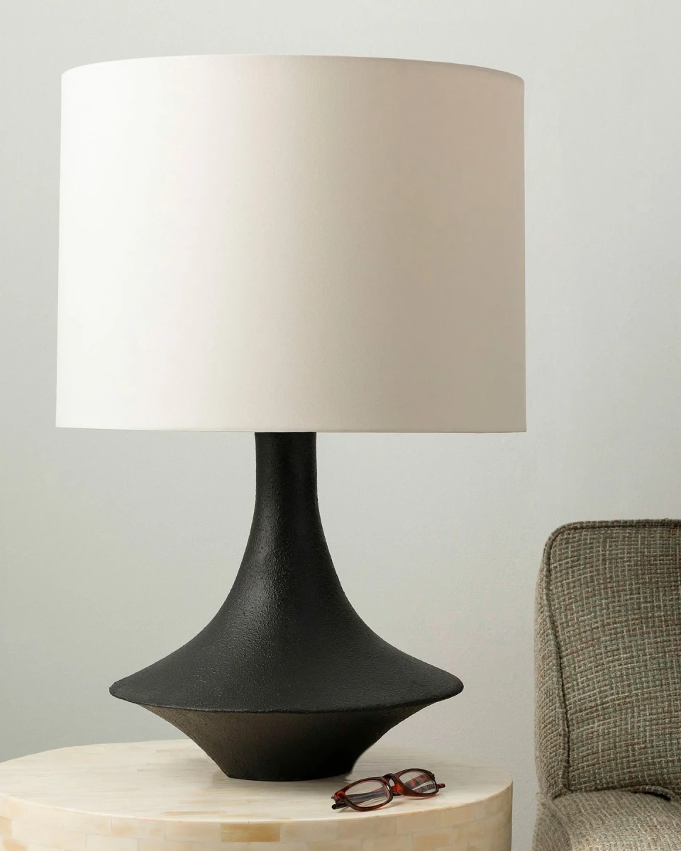 Чёрная настольная лампа “Шейди”  – это светильник имеет уникальный стиль, который можно разместить в любом современном  помещении. Благодаря своей универсальности, эта настольная лампа идеально подходит как для домашних интерьеров, так и для офисных помещений. Уюта этой лампе добавляет его белый цилиндрический абажур из ткани, который создает мягкое и приятное освещение в помещении. Абажур не только декоративный элемент, но и функциональная деталь, позволяющая направить свет в нужном направлении и создать уютную атмосферу. Он осветит пространство равномерным и мягким светом, создавая уютную и комфортную атмосферу. Вы сможете использовать эту лампу как основной источник света в комнате или как дополнительное освещение для чтения или работы.