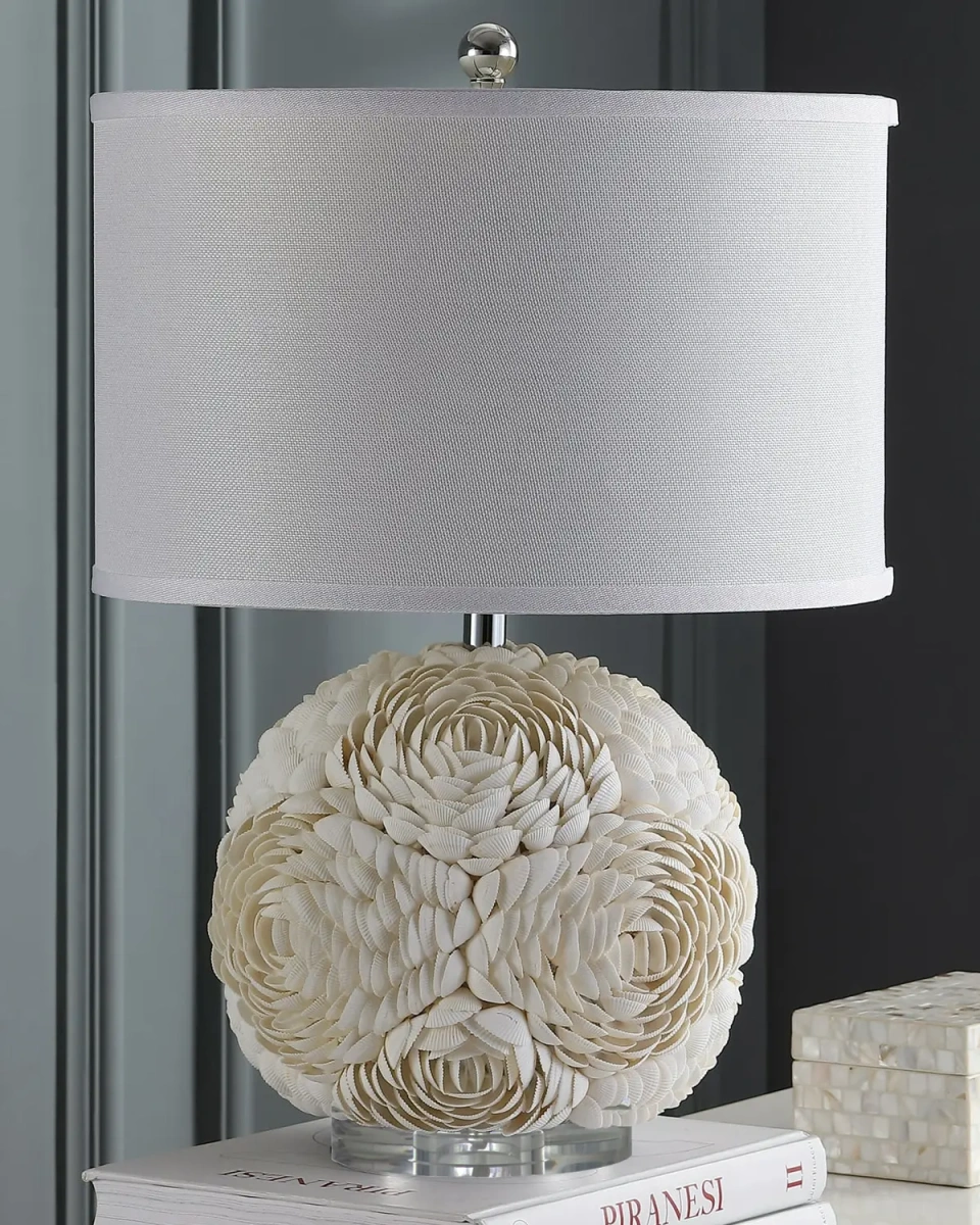 Настольная лампа "Алерия" отличается необычным дизайном в прибрежном стиле, украшенном узорами в виде больших открытых цветов, выполненными в мозаике из натуральных ракушек. Эта лампа будет привлекать внимание и добавлять уникальности любому помещению. Особенностью этой лампы является ее романтический стиль, которые придают ей неповторимый вид. Абажур из белого текстурированного хлопка обеспечивает мягкое и рассеянное освещение, создавая уютную атмосферу в комнате. Благодаря своим размерам, эта настольная лампа отлично подходит для использования на столе, комоде или прикроватной тумбочке. Кроме своей эстетической привлекательности, настольная лампа "Алерия" также функциональна. Ее акриловая подставка обеспечивают стабильность и надежную поддержку. Эта лампа идеально сочетается с различными стилями интерьера, от классического и рустик до современного и скандинавского. Она прекрасно дополнит вашу гостиную, спальню, кабинет или любое другое помещение, придавая ему особый шарм. Завораживающий дизайн делает эту лампу привлекательным выбором для тех, кто ценит прекрасное и со вкусом. Если вы ищете необычную и стильную настольную лампу, которая одновременно будет служить источником света и стильным аксессуаром, то настольная лампа "Алерия" – идеальный выбор!