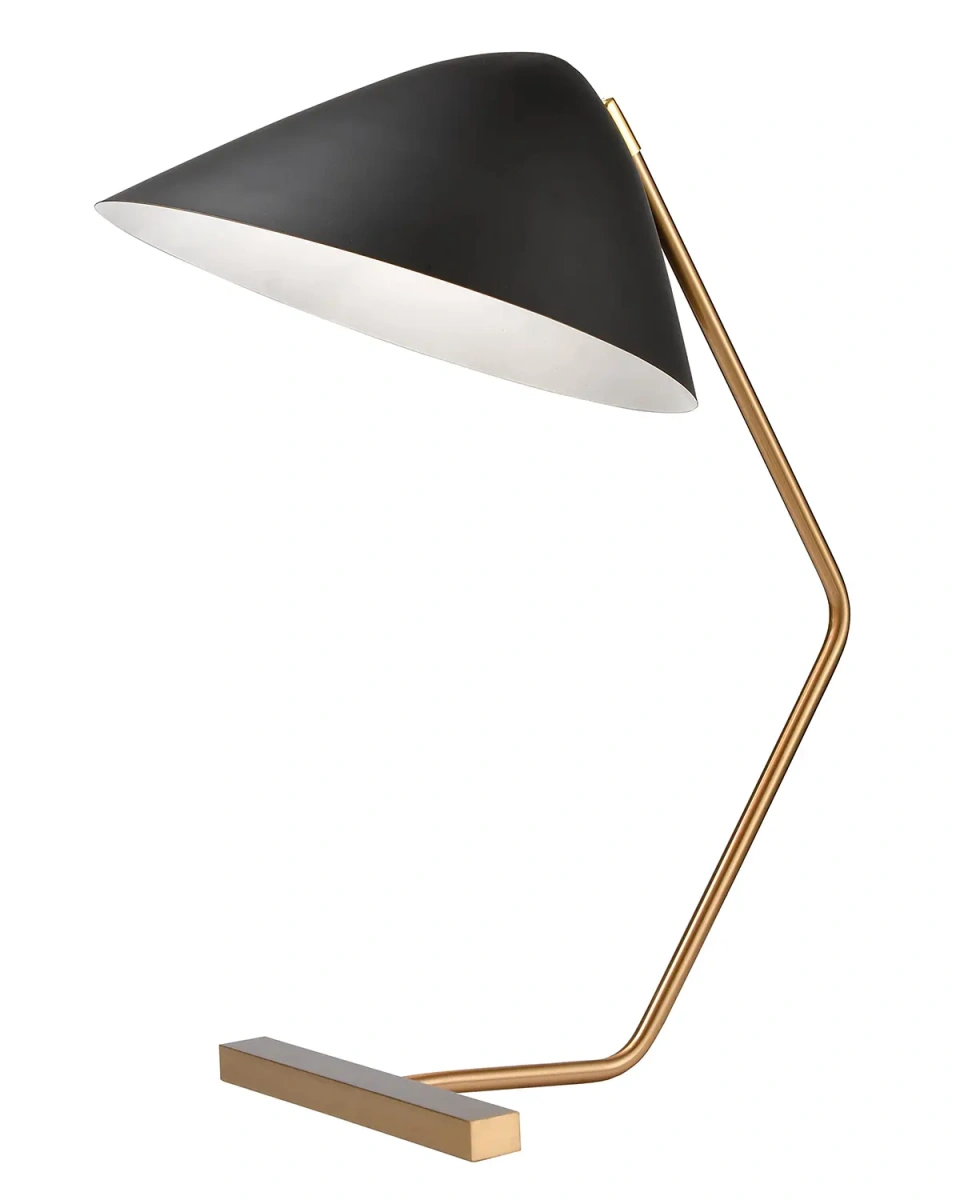 Настольная лампа "Салфер" – это элегантное и функциональное освещение, которое прекрасно впишется в любой современный интерьер. Она обладает стильным дизайном, который выполнен целиком из металла, что дает надежность и долговечность конструкции. Основание лампы имеет отделку в цветовой гамме латунь. Лампа также оснащена металлическим плафоном в темной отделке, который создает для силуэта светильника нужный контраст, что придает ей благородный и современный вид. Плафон имеет возможность вертикального наклона, что позволяет направить свет именно в ту область, где вы будете больше в нем нуждается. Это особенно удобно при чтении, работе за компьютером или при освещении конкретного объекта в комнате. Лампа "Салфер" обладает встроенным переключателем на проводе, который позволяет быстро и легко включать и выключать освещение. Шнур лампы выполнен в черной тканевой оплётке, что придает ей дополнительный стиль. Эта настольная лампа в стиле "Мид-Сенчури" сочетает в себе традиционную форму с современными деталями. Контрастная отделка и детали придают ей свежий взгляд на классический дизайн, что позволяет успешно интегрировать ее в различные стили интерьера – от классики до современности. Настольная лампа "Салфер" является идеальным вариантом для улучшения освещения в вашем доме или офисе. Она обеспечит вам яркий и рассеянный свет, который способен создать комфортное и уютное атмосферное освещение. Этот светильник также станет прекрасным дополнением к вашему рабочему столу, прикроватной тумбочке или комоду. Купив настольную лампу "Салфер", вы получаете не только функциональный предмет интерьера, но и стильный аксессуар, который сможет подчеркнуть ваш вкус и индивидуальность. Независимо от того, где именно вы решите разместить эту лампу, она станет неотъемлемой частью вашего интерьера и привнесет в него неповторимый стиль.