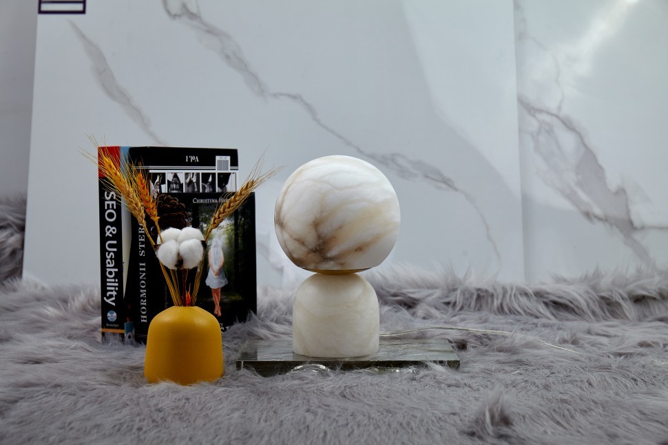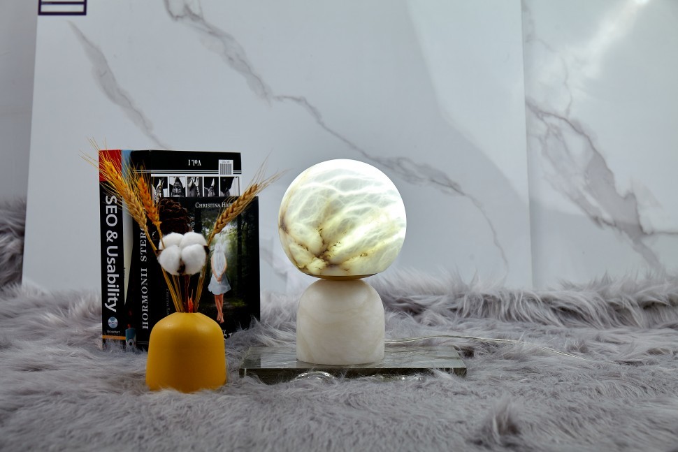 Вселенная в мини-варианте. Вдохновение безупречностью сфер. Настольные светильники Universo воссоздают гармонию небесных светил в вашем интерьере. Коллекция выполнена из натурального камня - испанского алебастра. Сверхпрочный минерал делает светильники прочными и долговечными. Природный рисунок и структура камня напоминают поверхность Луны. Внутренний свет подчеркивает красоту и усиливает сходство со спутником Земли. Корпус светильников – из латуни.