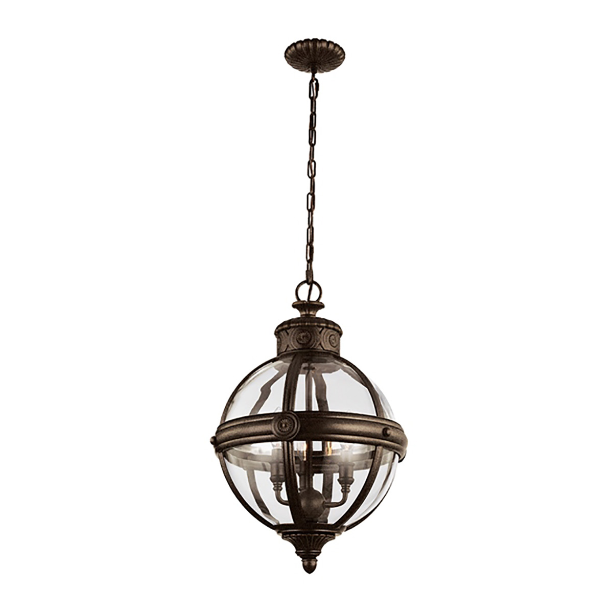 Подвесной светильник Elstead Lighting FE-ADAMS-3P-BRZ. Очарование викторианской эпохи, когда люди умели видеть истинную красоту в простоте. Отсюда и лаконичный орнамент, повторяющийся на разных деталях светильника, и патрон-свеча, и сама форма — стеклянного плафона-капсулы на изящной цепочке. А вот в металлическом обруче, охватывающих плафон, угадывается влияние стимпанка: необыкновенно уместная «перчинка» в этом классическом дизайне. Основание выполнено в цвете - Бронза. Идеально подойдет для освещения гостинной, кабинета, кухни, прихожей, спальни, столовой. Цепь 1524 мм в комплекте