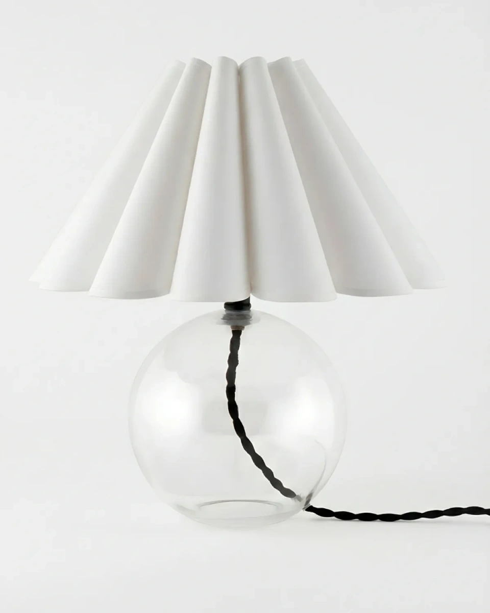 Прозрачная лампа "Джудит" - это изящный акцент, который наполняет интерьер ощущением лёгкости и спокойствия. Прозрачное стеклянное основание выглядит воздушно и визуально не утяжеляет пространство, отражая свет и окружающую обстановку. Белый конусный абажур с выразительной складчатой формой мягко рассеивает свет, создавая уютное, комфортное освещение для отдыха и вечернего времени. Лампа даёт тёплый, ненавязчивый свет, идеально подходящий для прикроватной тумбы, консоли или рабочего стола. «Джудит» гармонично вписывается в современные, скандинавские и минималистичные интерьеры, а также в пространства с природной палитрой. Эта модель легко сочетается с натуральным деревом, светлыми текстурами и лаконичным декором, добавляя интерьеру элегантность и спокойный характер.