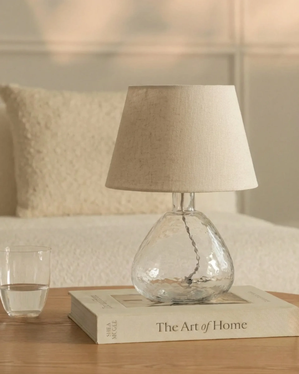 Прозрачная настольная лампа "Дэми" - это изящный акцент, который придаёт интерьеру лёгкость и свежесть. Прозрачная стеклянная лампа мягко отражает свет и окружающую обстановку, создавая ощущение воздушности. Верх украшен конусообразным льняным абажуром, который равномерно рассеивает свет, наполняя пространство мягким и уютным освещением. Абажур придаёт лампе современный и элегантный вид, делая её идеальным дополнением для прикроватной тумбы, консоли или рабочего стола. Прозрачное стекло в сочетании с натуральной текстурой льна гармонично вписывается в современные, минималистичные и скандинавские интерьеры, добавляя комнате изысканности и визуальной лёгкости.