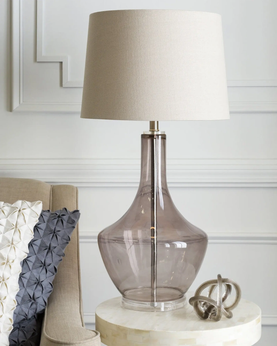 Серая настольная лампа "Монток" - это основание лампы выполненное из стекла, которое придает ей элегантный и современный вид. Прозрачный дымчато-серый оттенок создаст интересный интерьерный визуальный эффект. Этот ненавязчивый цвет позволит лампе легко вписаться в различные стили оформления помещения и станет прекрасным дополнением к любому интерьеру. Ее изысканный дизайн и функциональность позволят создать уютную атмосферу и добавить немного света в любое помещение. Лампа имеет белый тканевый абажур, который не только смягчает и рассеивает свет, создавая уютную атмосферу, но и добавляет стиля в общий вид лампы. Эта настольная лампа идеально подойдет для создания уютной обстановки в спальне, гостиной, кабинете или на прикроватной тумбочке. Она оснащена выключателем на проводе, что обеспечит легкость использования и управления светом. Она подарит вам мягкий, рассеянный свет, создавая приятную атмосферу и визуальный комфорт.