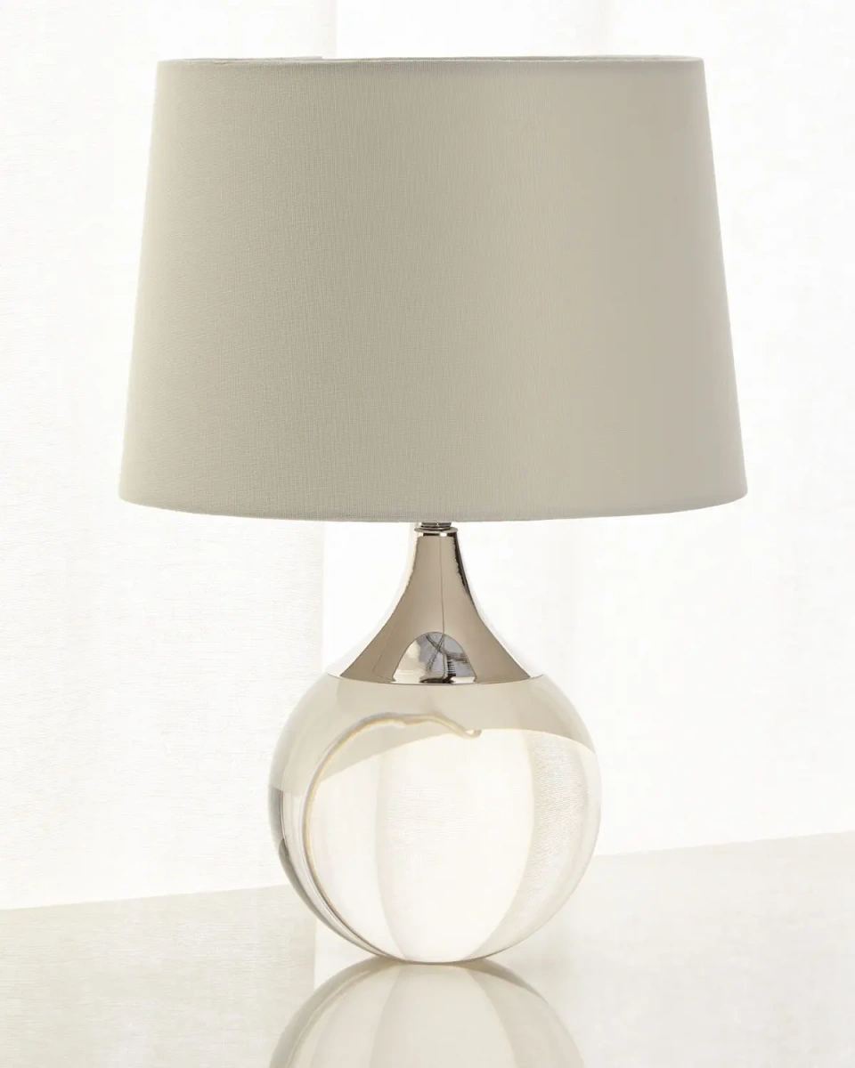Настольная лампа "Милуоки" окрашена в гладкий хромированный цвет, которые придаёт ей современный и утонченный вид. Основание этой лампы выполнено в форме хрустального полированного шара, что создает эффектное сочетание материалов. Лампа привлечет внимание своим дизайном, и станет настоящим украшением вашего интерьера. Настольная лампа "Милуоки" также оснащена конусным абажуром из высококачественного льна, который подчеркивает ее изысканность и придает комфортный свет. Осветите вашу комнату мягким, но достаточным светом для чтения, работы или просто для создания приятной атмосферы в помещении. Она прекрасно сочетается с любым стилем интерьера, будь то современный или классический. Позвольте этой элегантной лампе добавить стиля и функциональности в ваш дом или офис, и наслаждайтесь уютной и приятной атмосферой, которую она создаст.