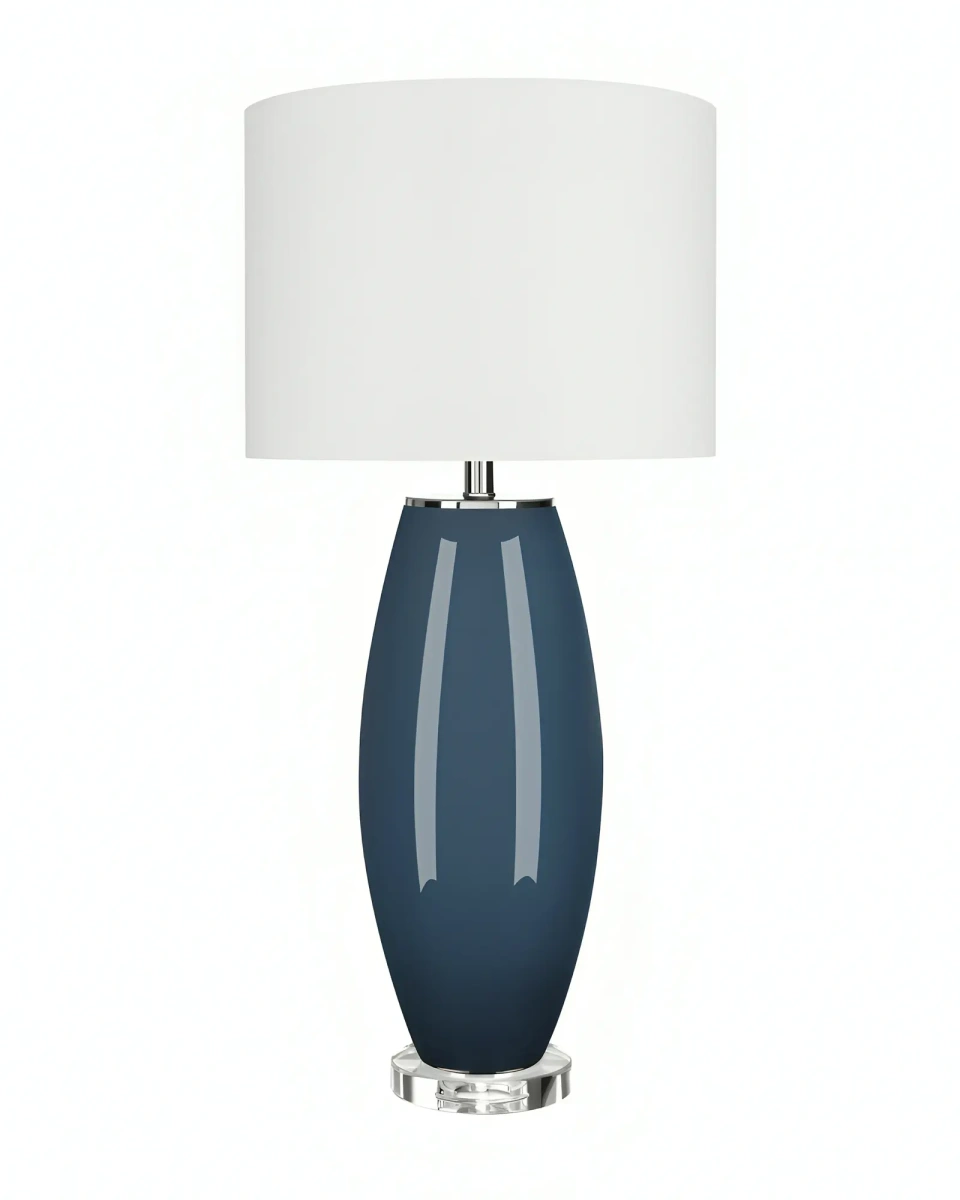 Синяя настольная лампа "Мальта" - это светильник, который прекрасно сочетает в себе классическую форму с современной отделкой. Её глянцевый темно-синий цвет, создаёт  эстетическую привлекательность, которая станет акцентом в вашем интерьере. Лампа укомплектована белым цилиндрическим абажуром из хлопка на твердой подкладке. Лампа имеет высоту 82 см и диаметр 35 см, что делает ее отличным дополнением к письменному столу, консоли или прикроватной тумбочки.
