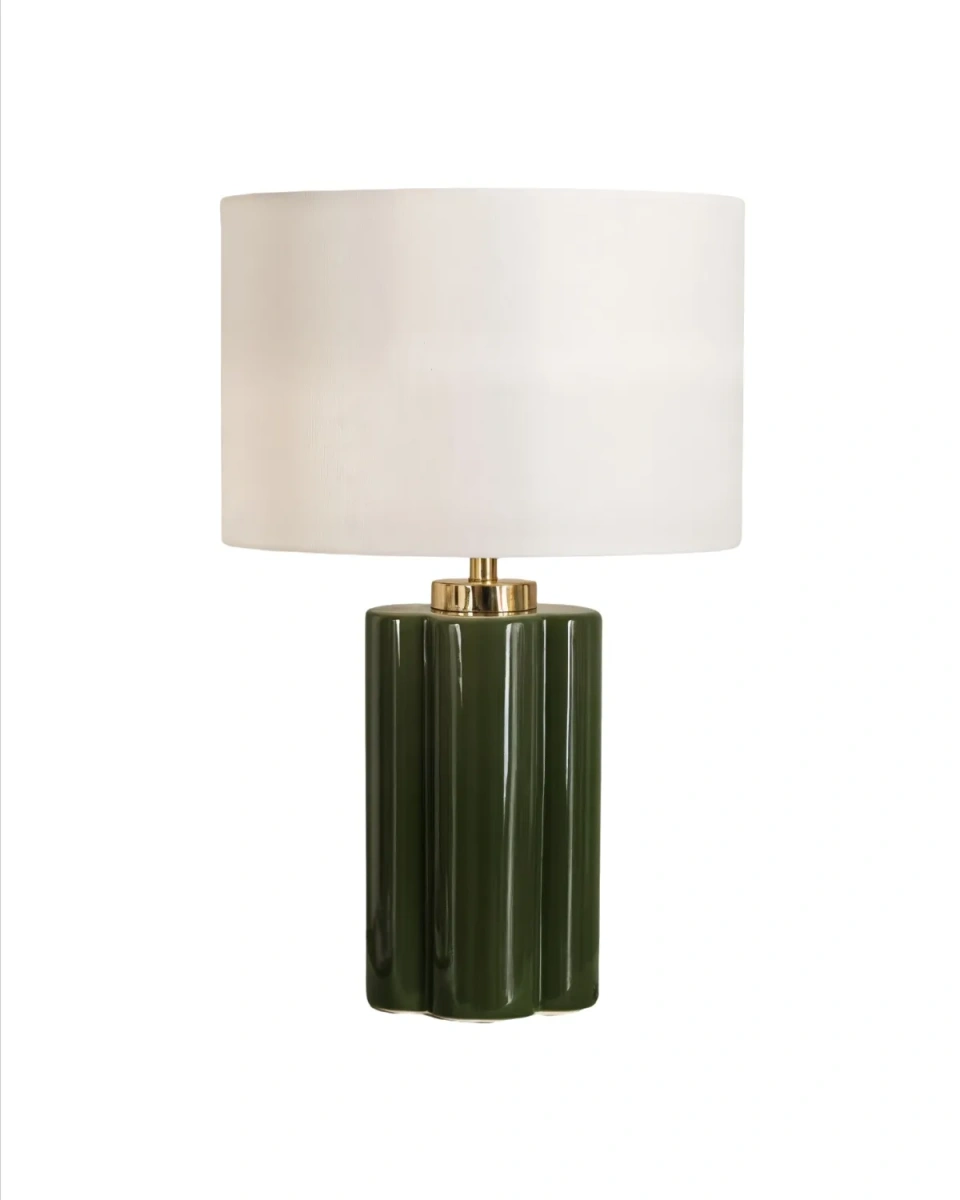 Зелёная настольная лампа "Туоми" – это стильный акцент для современного интерьера. Основание выполнено из керамики глубокого мохово-зелёного оттенка с рельефной фактурой, которая подчёркивает изысканный характер модели. Белый тканевый абажур мягко рассеивает свет, создавая уютную атмосферу в комнате. Декоративная деталь с золотым покрытием добавляет элегантности и делает лампу гармоничным сочетанием современного дизайна и классических нот. Лампа идеально подойдёт для спальни, гостиной или кабинета, где она станет не только источником света, но и стильным элементом декора.