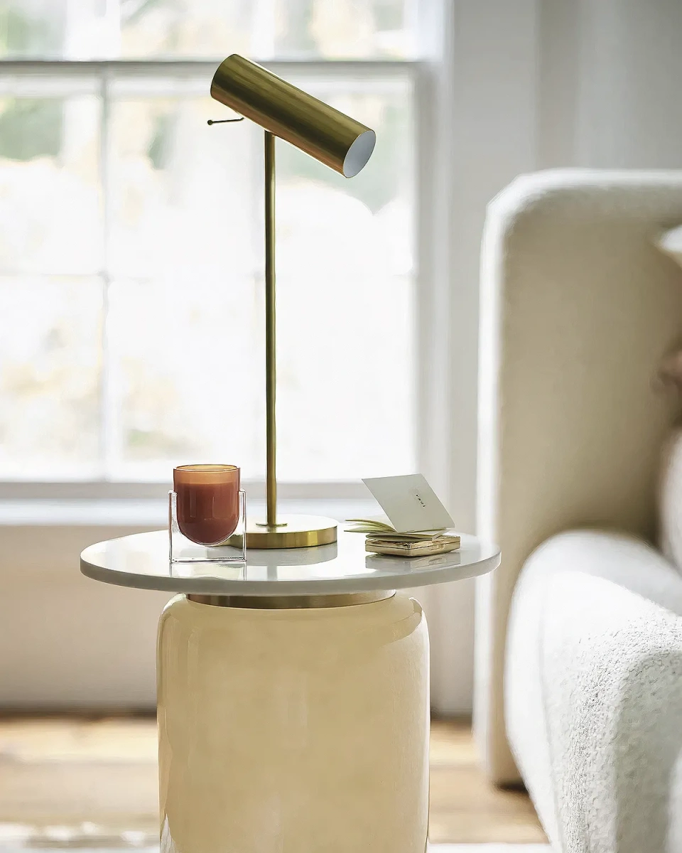 Золотая настольная лампа "Ллойд" – это идеальное решение для тех, кто ищет стильный и функциональный светильник для своего интерьера. Независимо от того, нужно ли вам превосходное рабочее освещение или просто желание создать атмосферу уюта, этот светильник прекрасно справится с любой задачей. Дизайн светильника “Ллойд” основан на гладкой цилиндрической форме, выполненной из прочного металла в цветовой гамме – латунь. Такой дизайн прекрасно сочетается практически с любым современным стилем интерьера. Он оснащен специальным механизмом, позволяющим регулировать направление света: вверх-вниз. Это позволяет сфокусировать светильник на конкретном объекте или зоне. Благодаря этой особенности, светильник “Ллойд” идеально подходит для использования в спальне, гостиной.