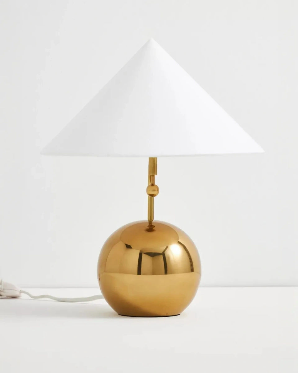 Золотистая лампа "Шанталь" с белым конусным абажуром — акцентный светильник в стиле современная классика. Сферическое металлическое основание с благородным золотистым блеском и лаконичный тканевый абажур-конус создают мягкий, уютный свет для тумбы, консоли или рабочего стола. Гармонично впишется в спальню, гостиную или кабинет, подчёркивая декоративные элементы интерьера. Подходит для светодиодных ламп тёплого и нейтрального свечения.