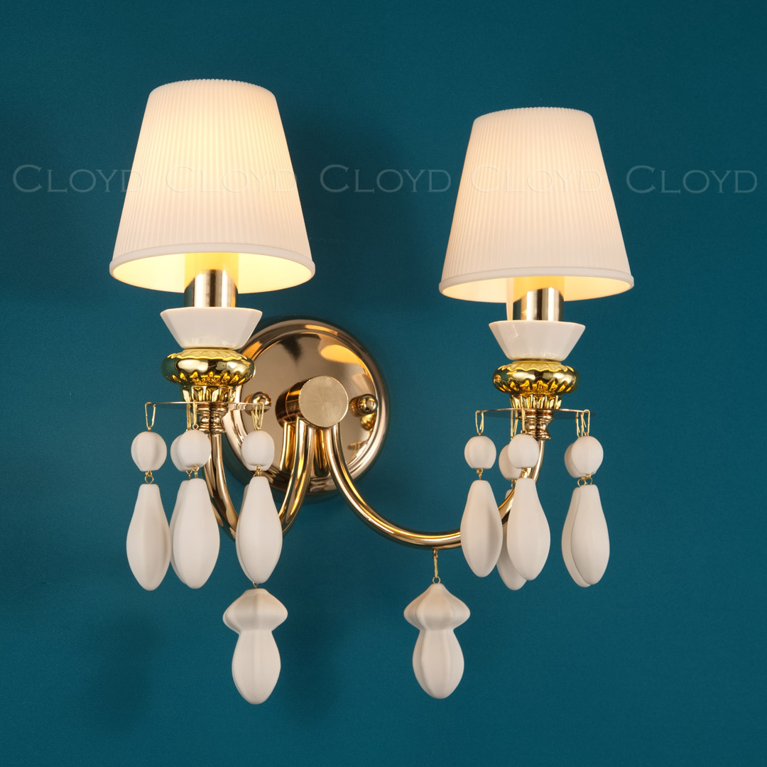 Бра Cloyd LOTTIE (Клойд Лотти) W2 / арт.20337, ширина: 31 см. высота: 35 см глубина: 19 см, источник света: E14 х 2 шт, цвет металла - золото блестящее. Особенности: керамика высокого качества, керамические абажуры.Гарантия: 1 год.