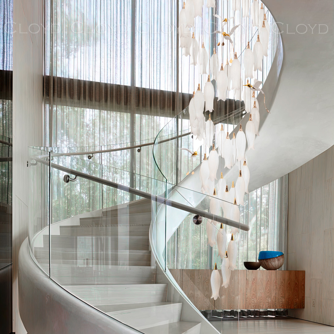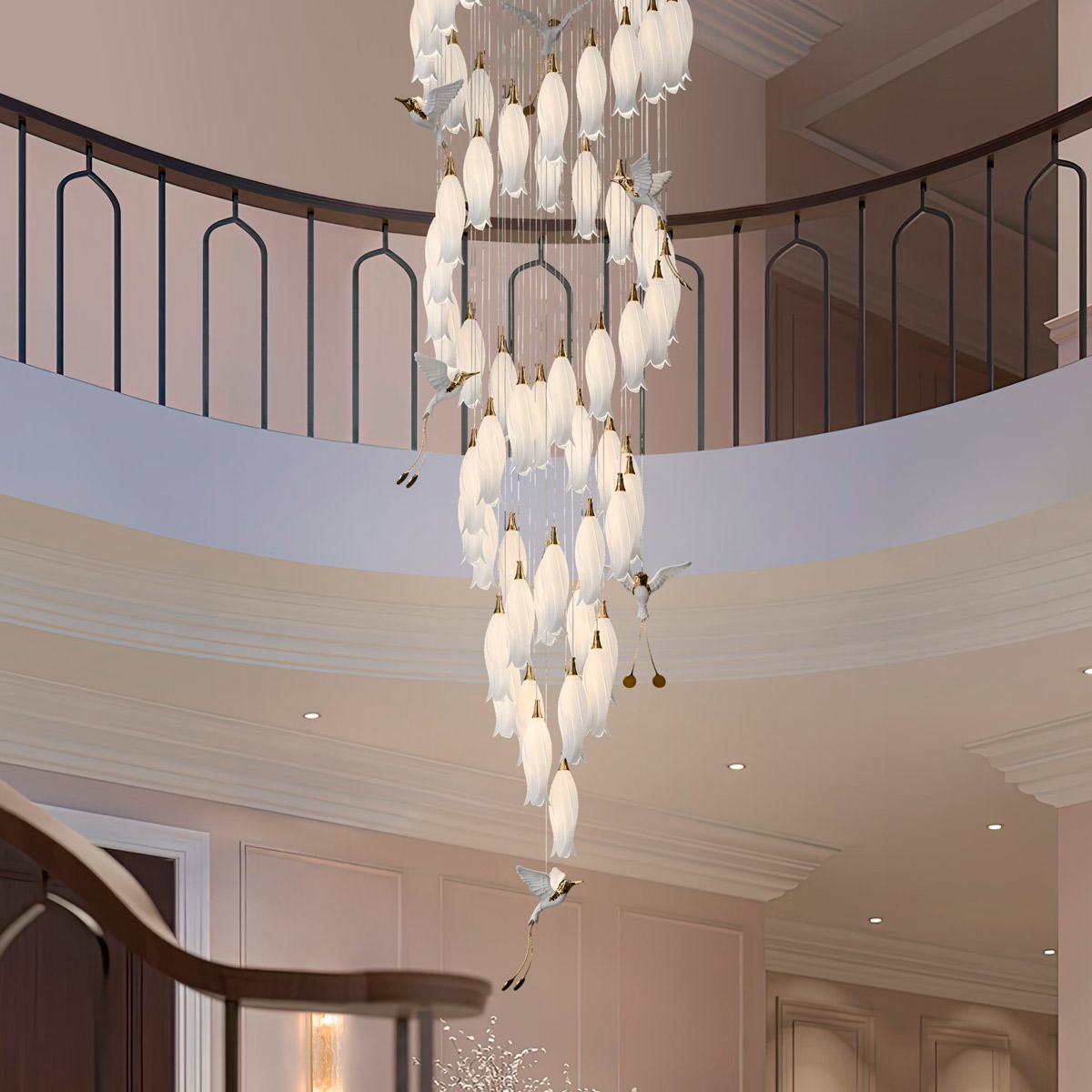 Люстра подвесная Cloyd ARGANA (Клойд Аргана) C60 / арт.11240, ø: 80 см. высота: 293 см, источник света: E14 х 60 шт, цвет металла - белый (окраска). Фурнитура - золото. Особенности: керамика высокого качества, птица выполнена из фарфора.Гарантия: 1 год.