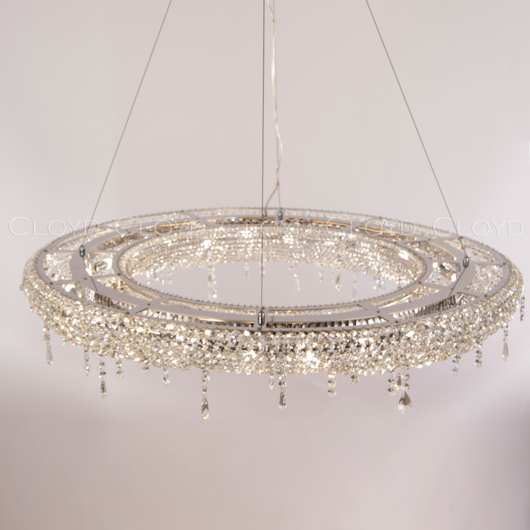 Люстра подвесная Cloyd HAYAO (Клойд Хаяо) C24 / арт.10395, ø: 100 см. высота: 20 см, источник света: G9 х 24 шт, цвет металла - хром блестящий. Особенности: хрусталь К9.Гарантия: 1 год.