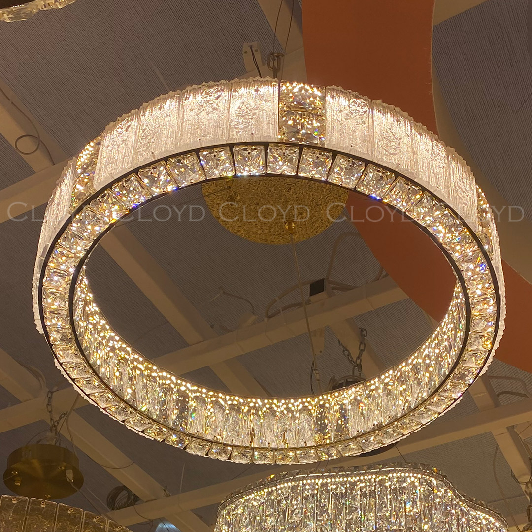 Люстра подвесная Cloyd RADIANTA (Клойд Радианта) C1 / арт.11231, ø: 63 см. высота: 11 см, источник света: LED 70 Вт (3000 К, теплый свет), цвет металла - золото блестящее. Особенности: хрусталь К9.Гарантия: 1 год.