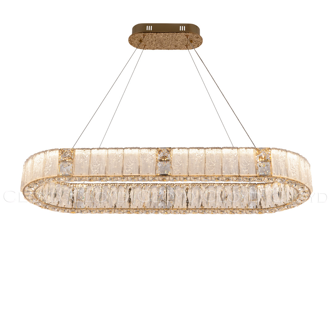 Люстра подвесная Cloyd RADIANTA (Клойд Радианта) C1 / арт.11233, ширина: 102 см. высота: 11 см глубина: 37 см, источник света: LED 100 Вт (3000 К, теплый свет), цвет металла - золото блестящее. Особенности: хрусталь К9.Гарантия: 1 год.