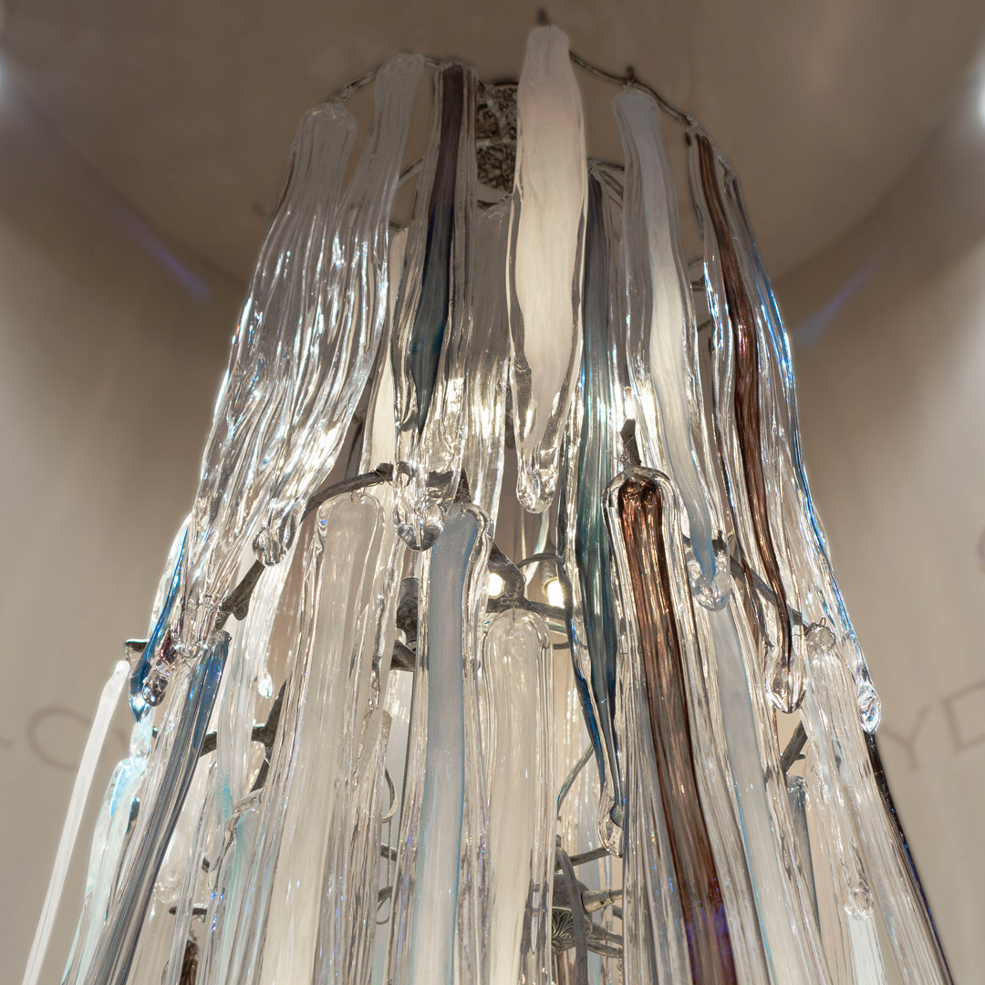 Люстра подвесная Cloyd SULAWESI (Клойд Сулавеси) C24 / арт.11255, ø: 52 см. высота: 260 см, источник света: G9 х 24 шт, цвет металла - серебро темное. Особенности: выдувное (муранское) стекло.Гарантия: 1 год.