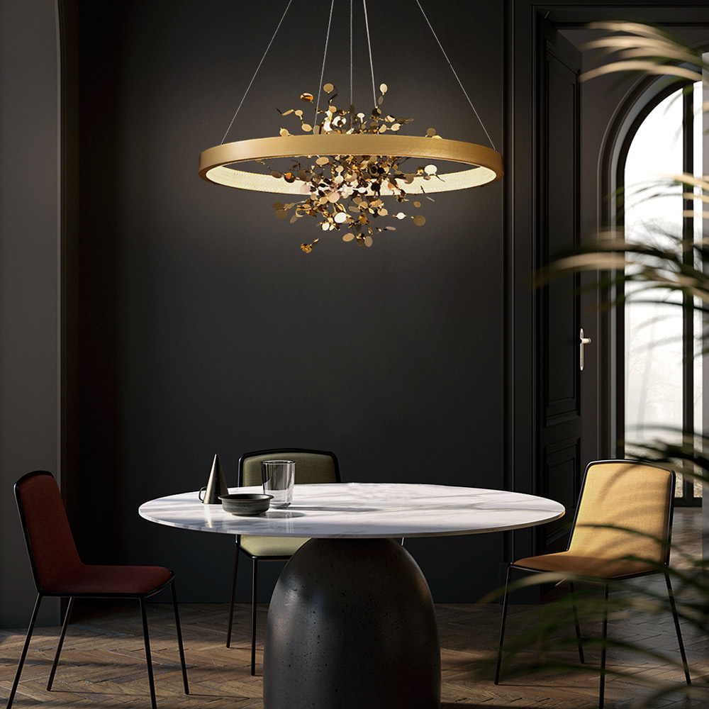 Люстра подвесная Cloyd TURBULENT (Клойд Турбулент) C1 / арт.10783, ø: 80 см. высота: 45 см (подвес в комплекте - до 135 см), источник света: LED 40 Вт, цвет металла - латунь. Гарантия: 1 год.