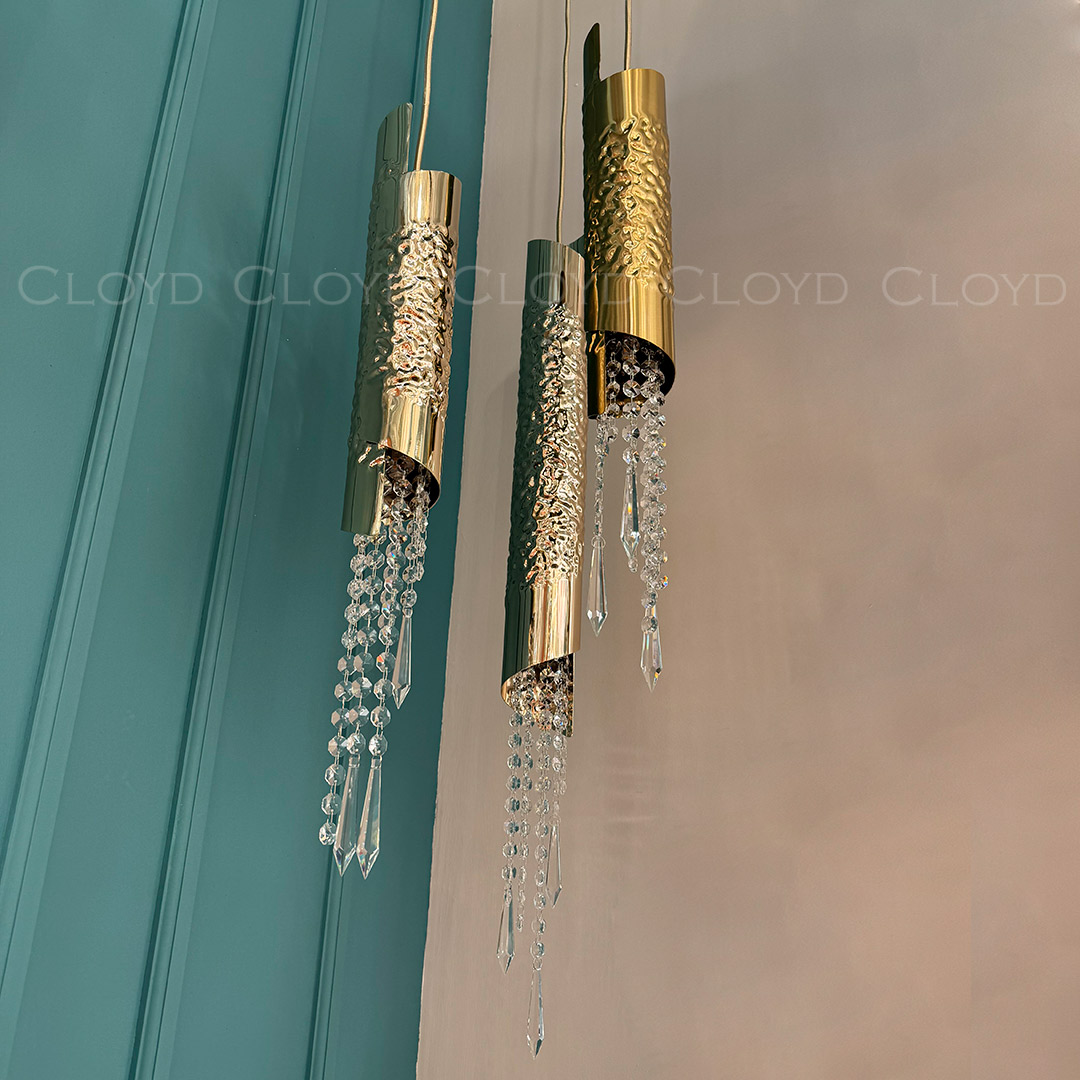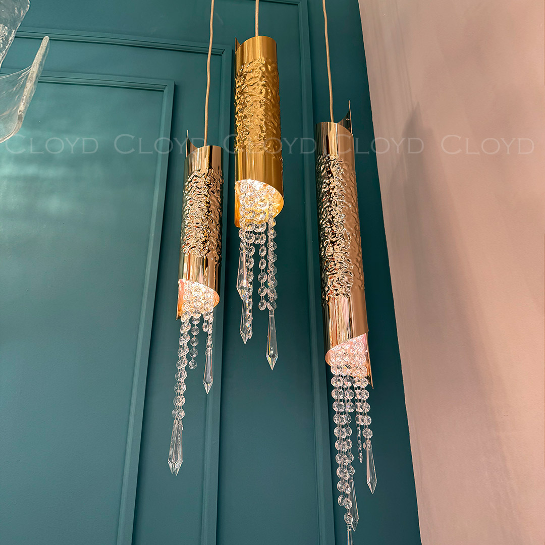 Подвесной светильник Cloyd EFIALT (Клойд Эфиальт) P1 / арт.11521, ø: 8 см. высота: 66 см, источник света: G9 х 1 шт, цвет металла - латунь. Особенности: хрусталь К9.Гарантия: 1 год.