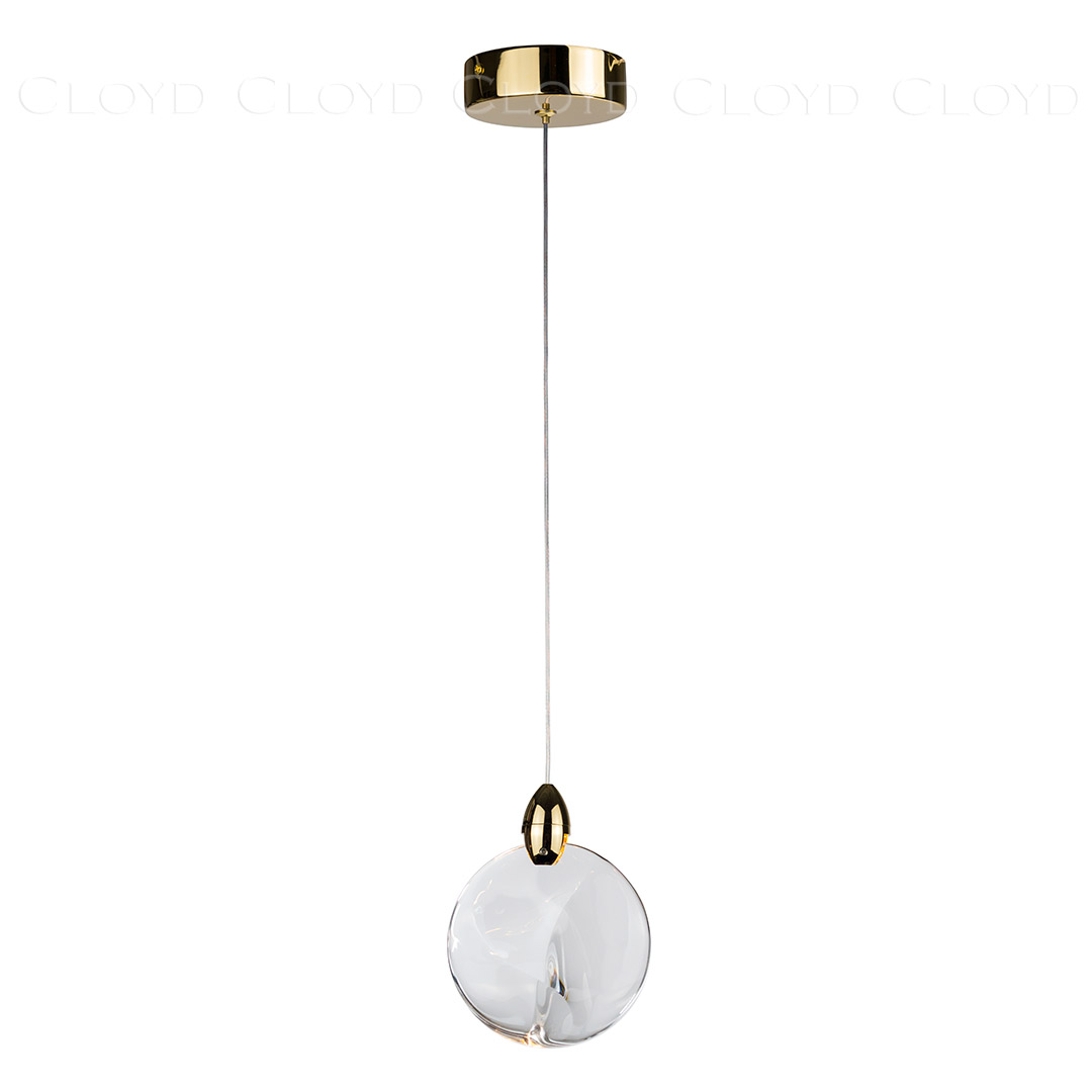 Подвесной светильник Cloyd GLOCK (Клойд Глок) P1 / арт.11624, ø: 12 см. высота: 12 см (подвес в комплекте - до 180 см), источник света: LED 3 Вт (3000 К, теплый свет), цвет металла - золото блестящее. Особенности: хрусталь К9.Гарантия: 1 год.