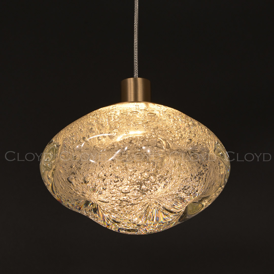 Подвесной светильник Cloyd VOCAL (Клойд Вокал) P1 / арт.11345, ø: 15 см. высота: 13 см (подвес в комплекте - до 190 см), источник света: LED 6 Вт (3000 К, теплый свет), цвет металла - латунь. Стеклянные элементы этих светильников изготовлены вручную и могут отличаться по форме и оттенку стекла от партиии к партии. Гарантия: 1 год.