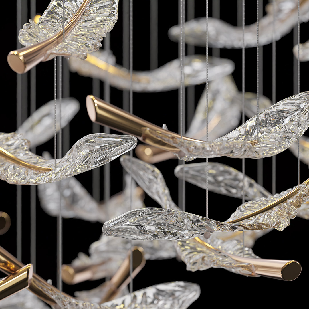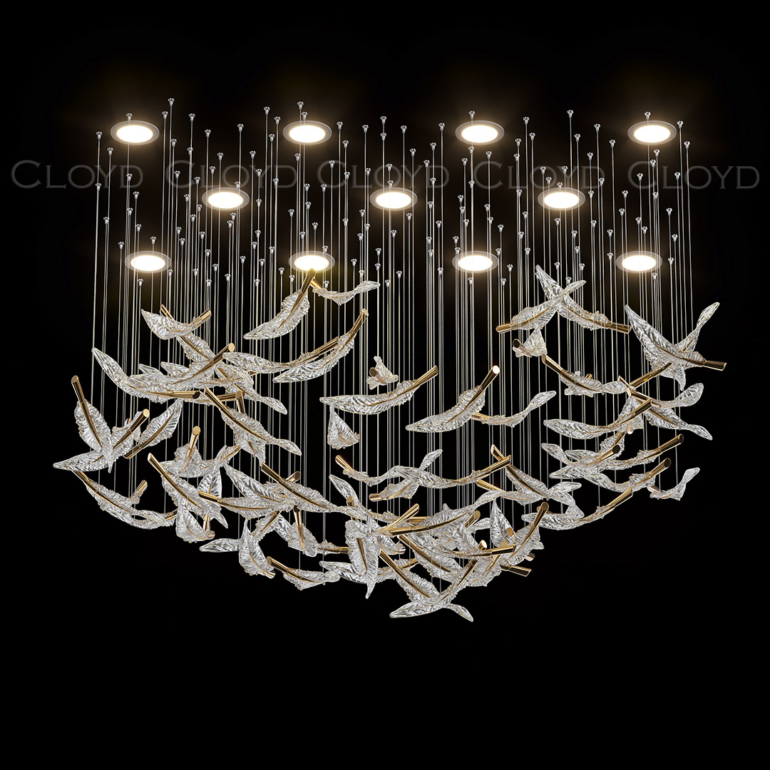 Световая композиция Cloyd AERIA 1686 (Клойд Аэрия) S80 / арт.60004, ширина: 120 см. высота: 100 см глубина: 80 см. Без потолочной чаши. Композиция включает в себя: 80 стеклянных элементов (цвет стекла - прозрачный и золото), потолочные крепежи, трос, фиксаторы для стекол и сопроводительную документацию для монтажа.Рекомендуемое количество источников света — 12 шт (не включены в стоимость). Возможны любые изменения размеров и форм под ваш проект.