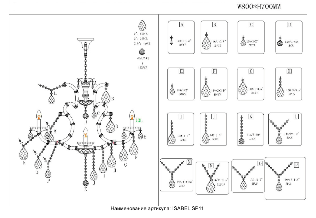 Цвет подвесок Прозрачный