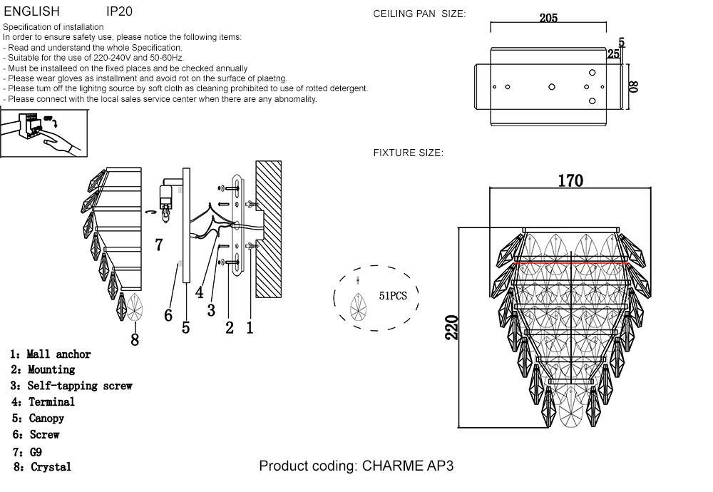 Артикул CHARME AP3 CHROME/TRANSPARENT