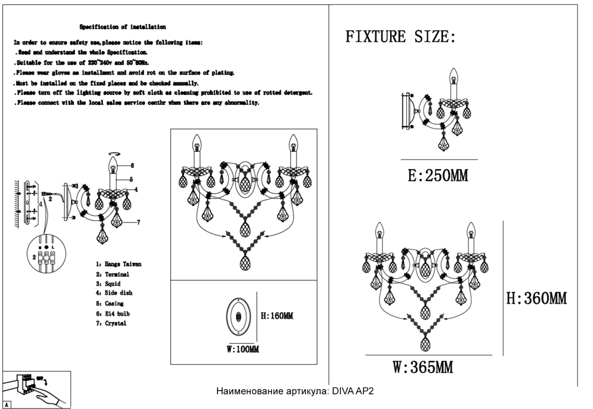 Бра Crystal Lux DIVA AP2