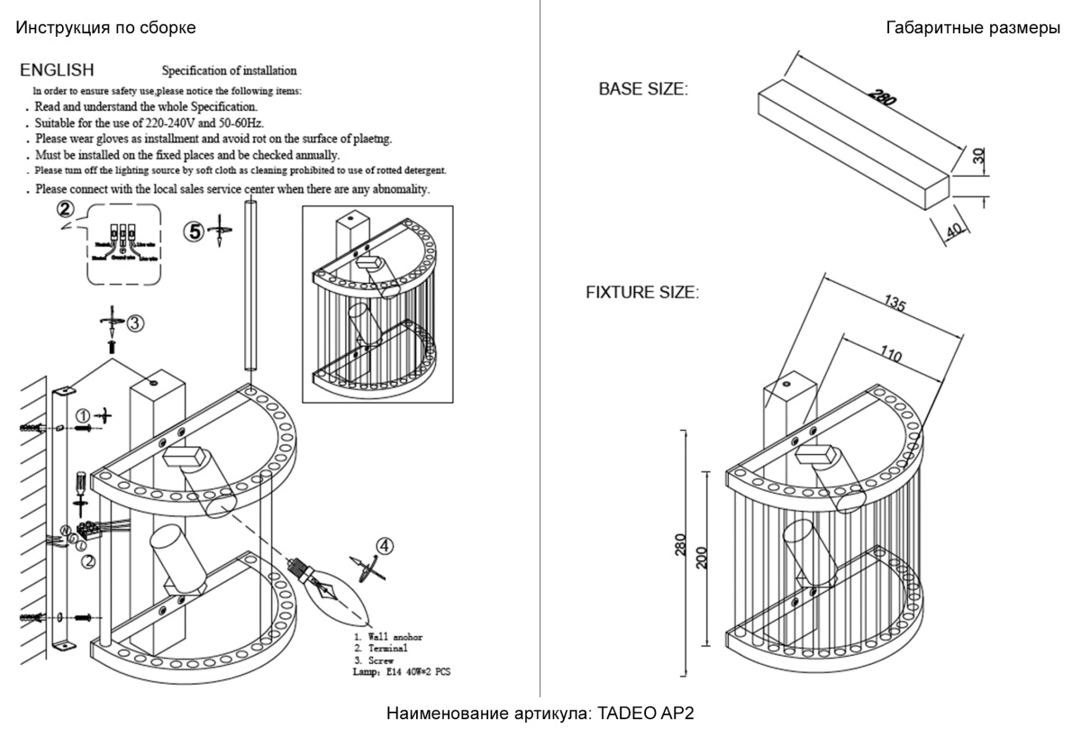 Артикул TADEO AP2 CHROME/TRANSPARENTE