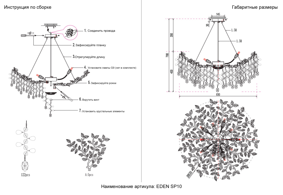 Люстра Crystal Lux EDEN SP10 GOLD фото 8