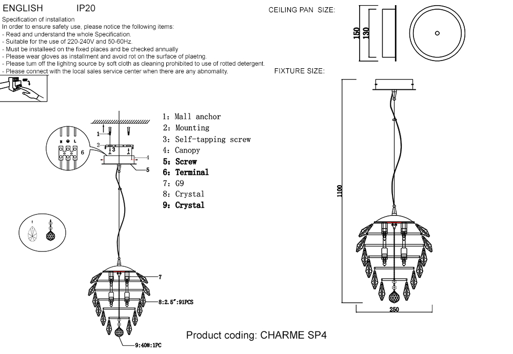 Материал подвесок Хрусталь