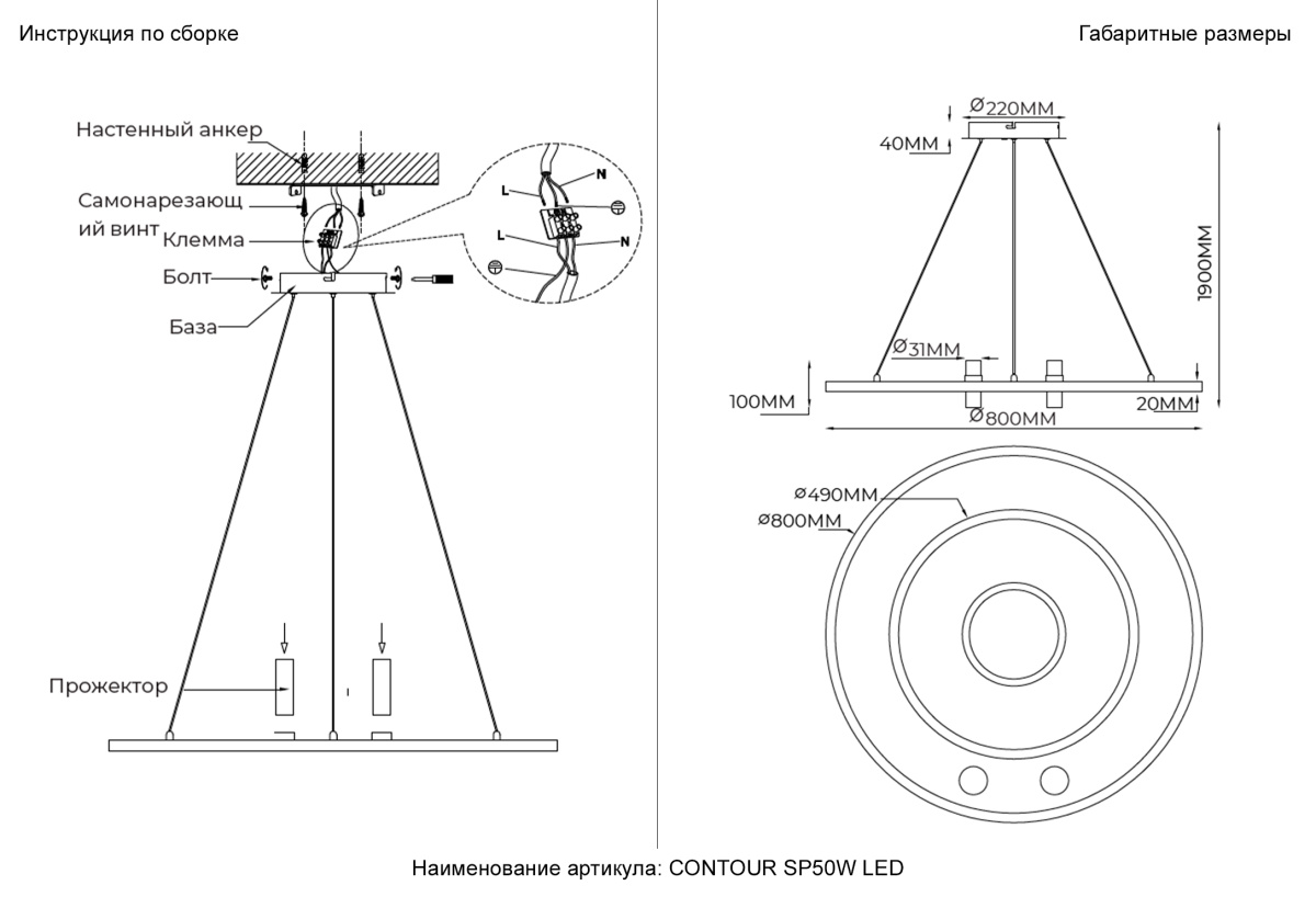Светильник подвесной Crystal Lux CONTOUR SP50W LED BLACK