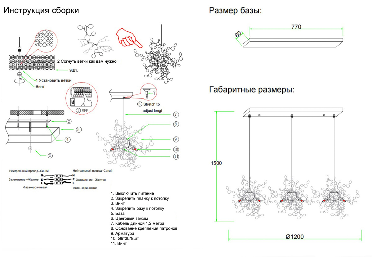 Длина подвеса, мм 1200