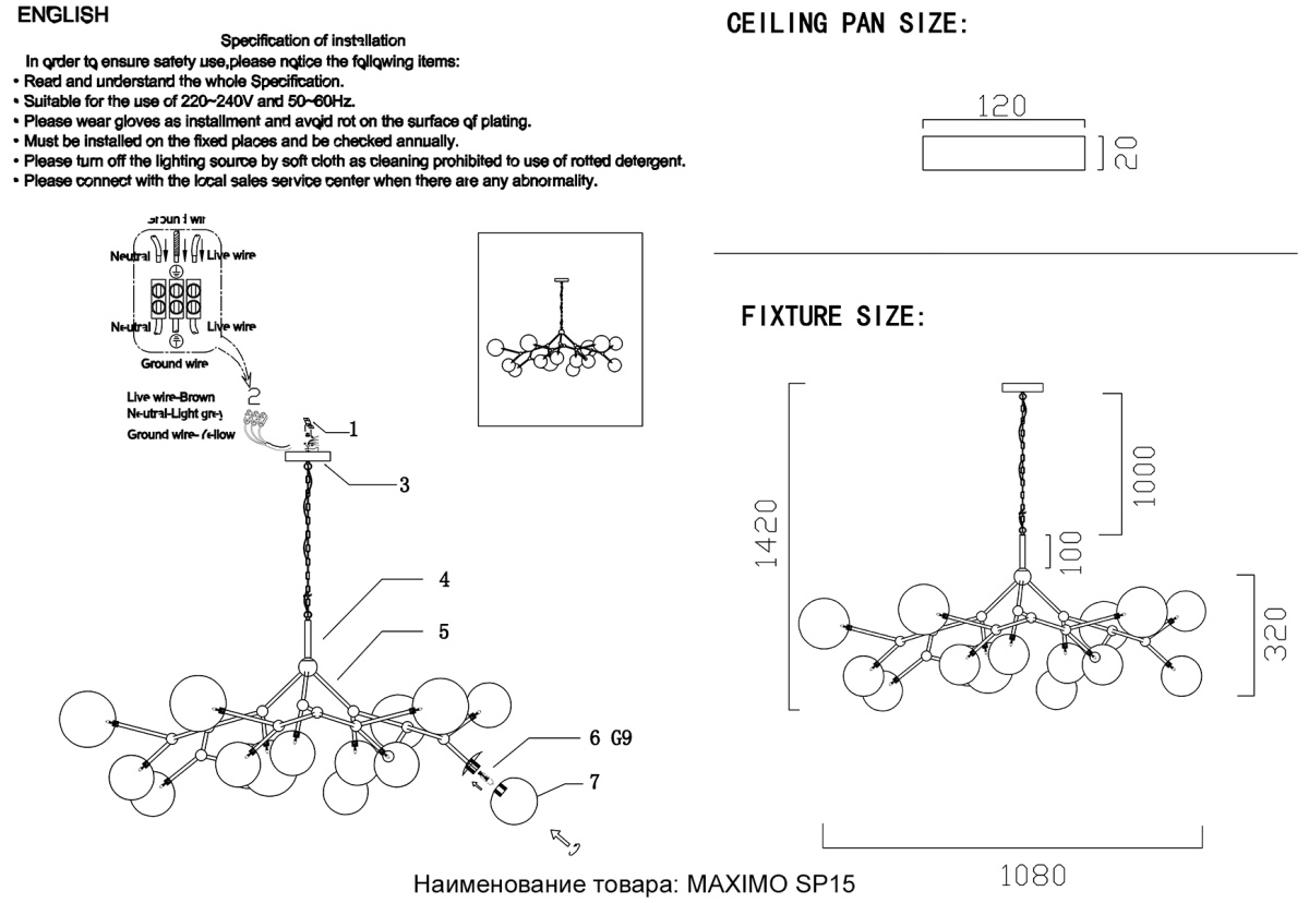 Длина подвеса, мм 1000