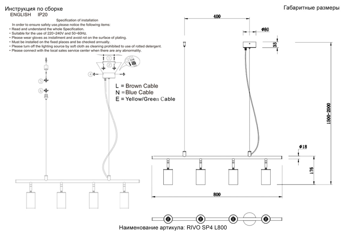 Светильник подвесной Crystal Lux RIVO SP4 L800 BL