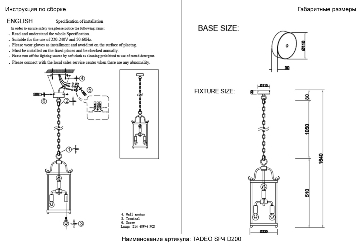 Артикул TADEO SP4 D200 CHROME/TRANSPARENTE