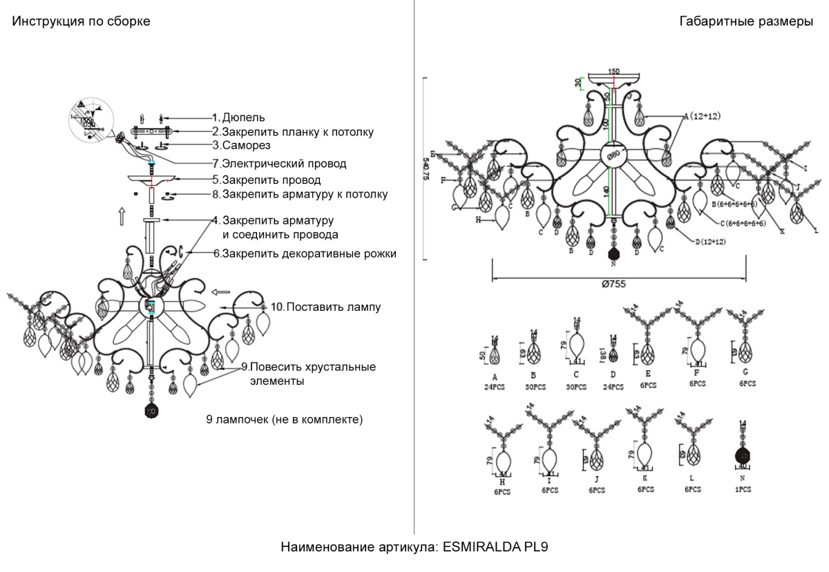 Светильник потолочный Crystal Lux ESMIRALDA PL9 SILVER фото 7