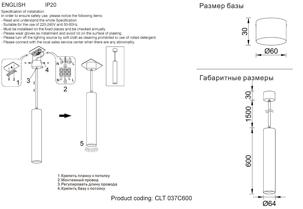 Длина подвеса, мм 1000