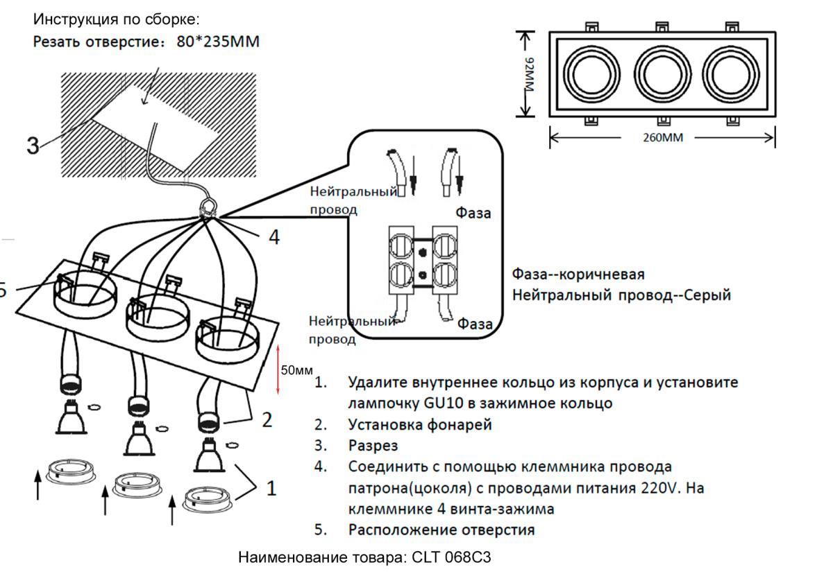 Светильник встроенный Crystal Lux CLT 068C3 BL