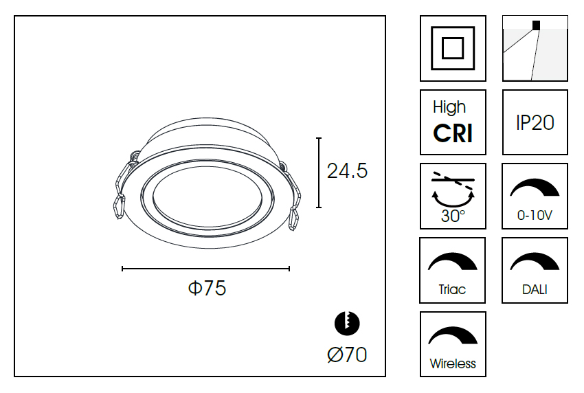 Встраиваемый светильник DA8303DR d.7.5