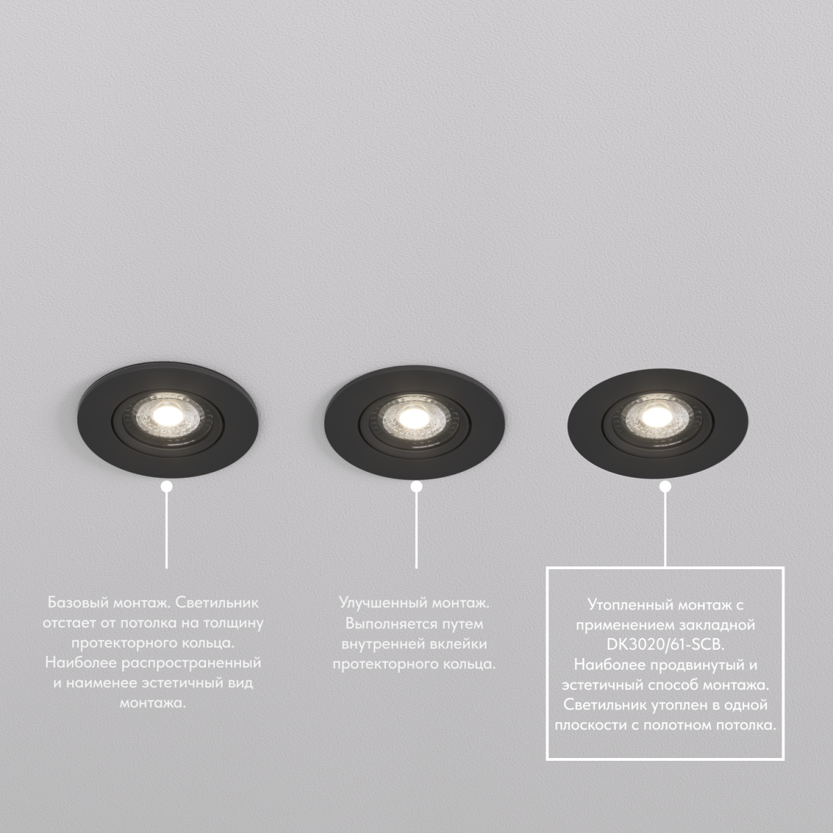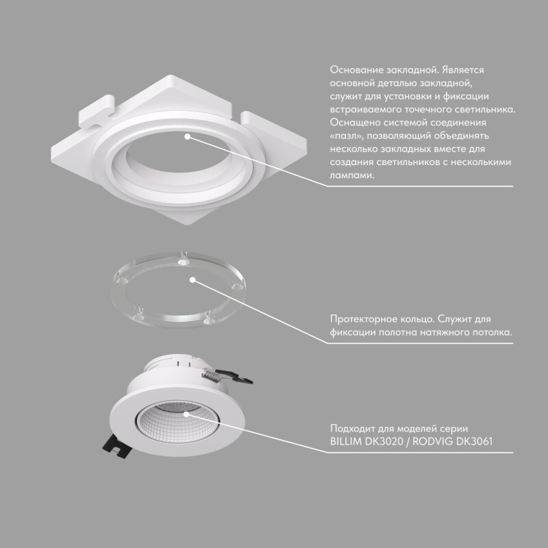 Закладная панель SCB для светильников DK3020 и DK3061. Позволяет добиться эффекта \"невидимости\" плафона в натяжных потолках за счет утопленного расположения светильника.