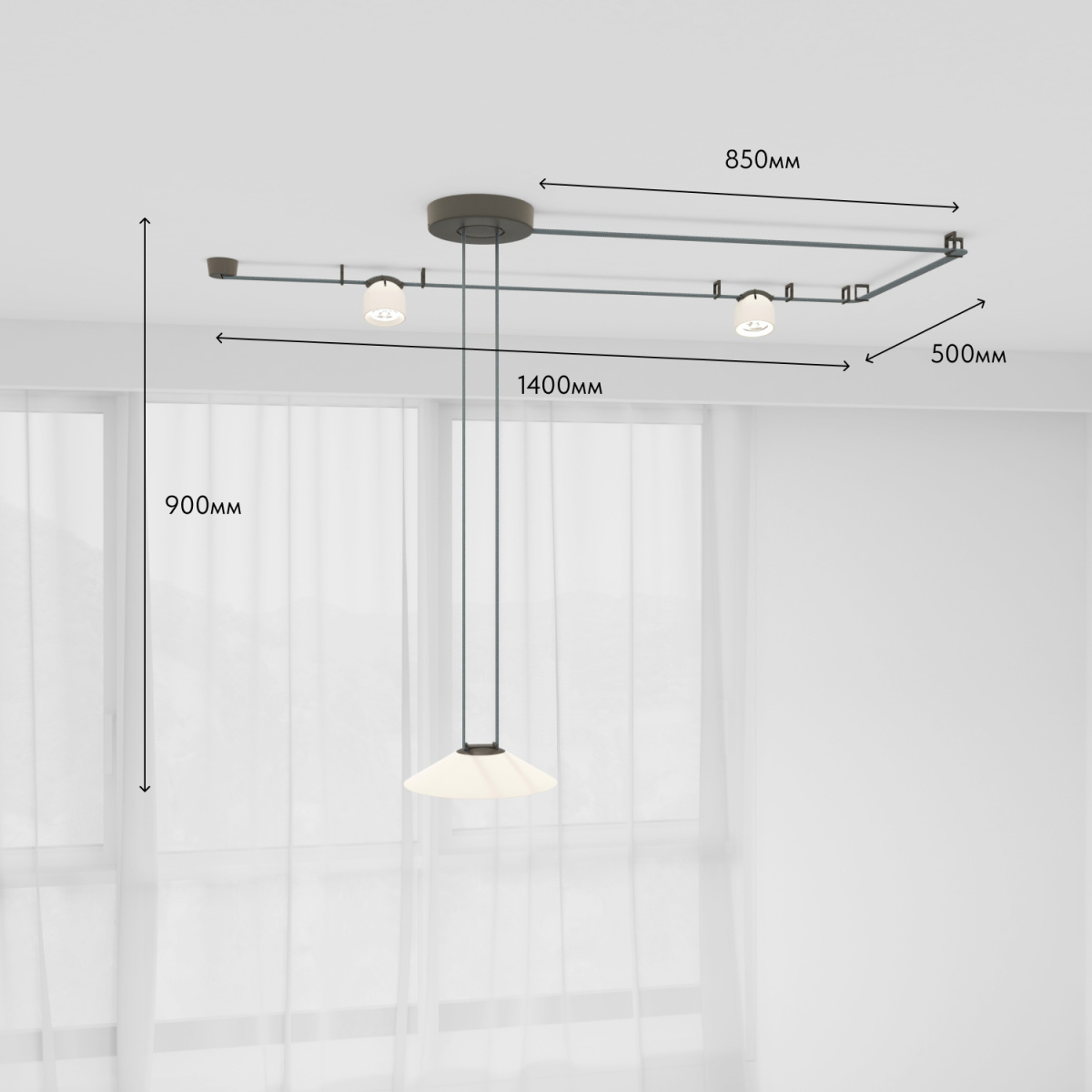 Комплект ременной трековой системы Belty. Предназначен для сборки готового светильника силами покупателя. Поставляется в наборе, состоящем из отдельных комплектующих - элементов ременной системы, блока питания и светильников. Обратите внимание - данный дизайн осветительной системы предполагает размещение блока питания в накладном основании TR5510-BK. Таким образом, не требуется размещать блок питания удаленно в электрическом лючке или щите.\n\nФактическая длинна ремня 5000 мм.\n\nСостав комплекта: \nTR5510-BK - 1\nTR5518-BK - 8\nTR5512-BK - 1\nDK5540-WH+BK - 2 \nDK5564-WH+BK - 1 \nTR5500-DB - 1 \nTR5526-AL - 1 шт