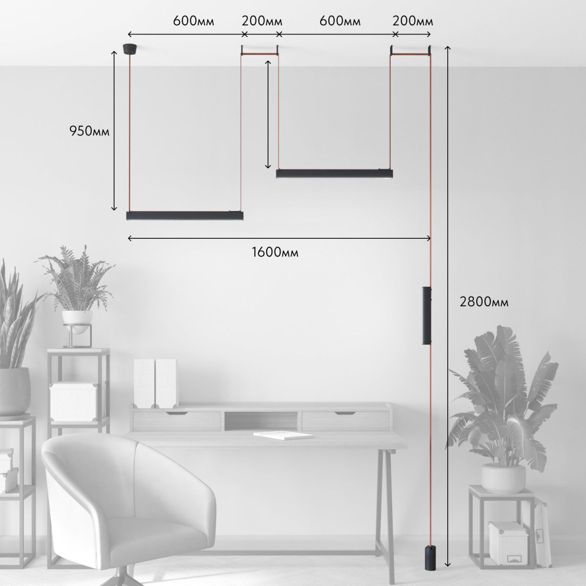Комплект ременной трековой системы Belty. Предназначен для сборки готового светильника силами покупателя. Поставляется в наборе, состоящем из отдельных комплектующих: элементов ременной системы, блока питания и светильников. Обратите внимание - данный дизайн осветительной системы предполагает выносное размещение блока питания в электрическом щитке/лючке и тд. Необходимо обеспечить подведение низковольтного вывода питания к ременной системе. Если отсутствует возможность обеспечить низковольтный вывод питания, возможно использование модели накладного основания, предусматривающего размещение блока питания внутри себя (артикул TR5510-BK/TR5511-BK). В этом случае изменяется цена набора, а также внешний вид основания.\n\nСостав комплекта:         \n        TR5512-BK Накладное основание BELTY BASE - 1 шт\n        TR5501-BR Трек-ремень BELTY BASE- 1 шт\n        TR5518-BK Накладное крепление BELTY BASE - 4 шт\n        DK5574-BK Трековый светильник BELTY LINEAR - 1 шт\n        DK5576-BK Трековый светильник BELTY LINEAR - 2 шт\n        TR5516-BK Утяжелитель BELTY BASE - 1 шт\n        TR5526-AL - 1 шт\n\nФактическая длинна ремня 8400 мм.