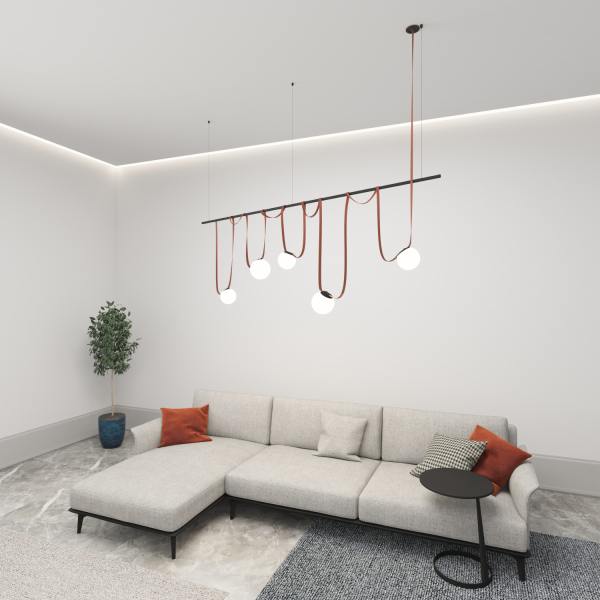 Комплект ременной трековой системы Belty. Предназначен для сборки готового светильника силами покупателя. Поставляется в наборе, состоящем из отдельных комплектующих: элементов ременной системы, блока питания и светильников. Обратите внимание - данный дизайн осветительной системы предполагает выносное размещение блока питания в электрическом щитке/лючке и тд. Необходимо обеспечить подведение низковольтного вывода питания к ременной системе. Если отсутствует возможность обеспечить низковольтный вывод питания, возможно использование модели накладного основания, предусматривающего размещение блока питания внутри себя (артикул TR5510-BK/TR5511-BK). В этом случае изменяется цена набора, а также внешний вид основания.\n\nСостав комплекта: \nTR5513-BK Встраиваемое основание BELTY BASE - 1 шт\nTR5501-DG Трек-ремень BELTY BASE- 1 шт\nTR5536-BK Крепление-зажим BELTY ROD - 9 шт\nDK5560-BK Трековый светильник BELTY FLOW - 5 шт\nTR5537-BK Подвес для штанги BELTY ROD - 3 шт\nTR5534-BK Штанга BELTY ROD - 1 шт\nTR5520-BK Наконечник BELTY BASE - 1 шт\nTR5528-AL Блок питания - 1 шт\n\nФактическая длинна ремня 10000 мм.