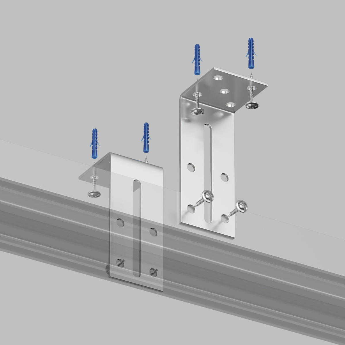 Комплект регулируемых уголков для закладных профилей, предназначен для крепления закладного профиля трековой системы к потолку, при встраиваемом монтаже в пленочные натяжные потолки. Имеет продольный пропил для регулировки профиля по высоте относительно уголков. В состав комплекта входят два уголка и необходимый набор крепежа. Рекомендуемое количество комплектов для монтажа профилей: три комплекта на один двухметровый профиль.