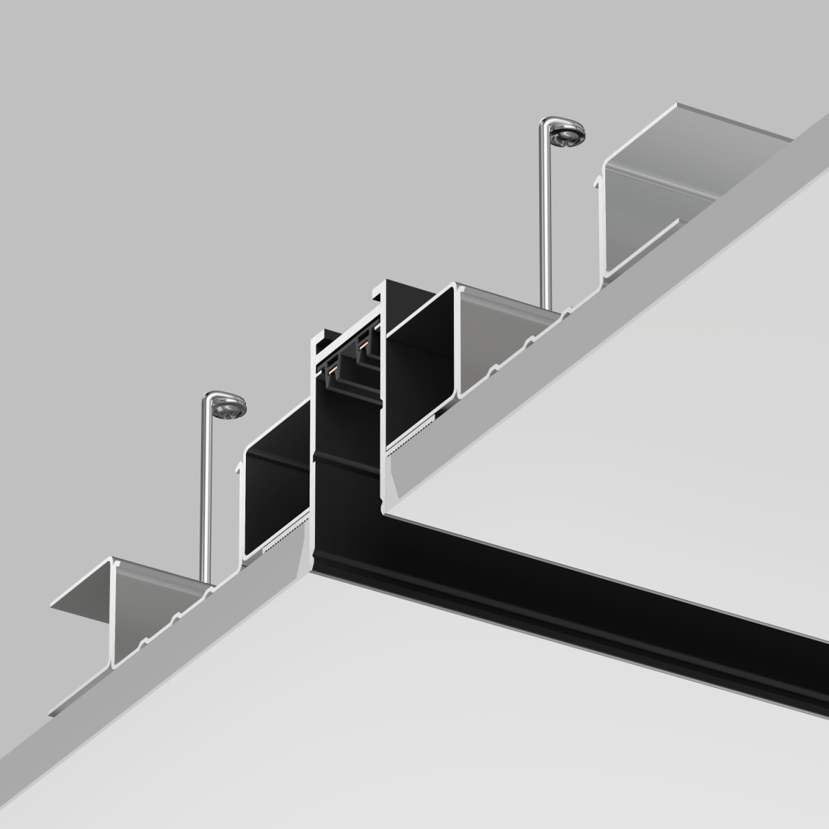 Трек системы SMART для встраиваемого монтажа в гипсокартон. Имеет специальные фланцы-упоры по всей площади, благодаря которым надежно фиксируется в материале подвесного потолка методом скрытого монтажа. Является лучшим решением для встраиваемого монтажа в гипсокартон. Торцевые заглушки идут в комплекте. Дополнительные аксессуары: подвод питания, соединительные элементы и декоративные экраны приобретаются отдельно. Шинопровод подключается к сетевому напряжению AC 220V. Драйвер и трансформатор не требуются. Для удобной и безопасной транспортировки рекомендуем использовать короб CB2020.