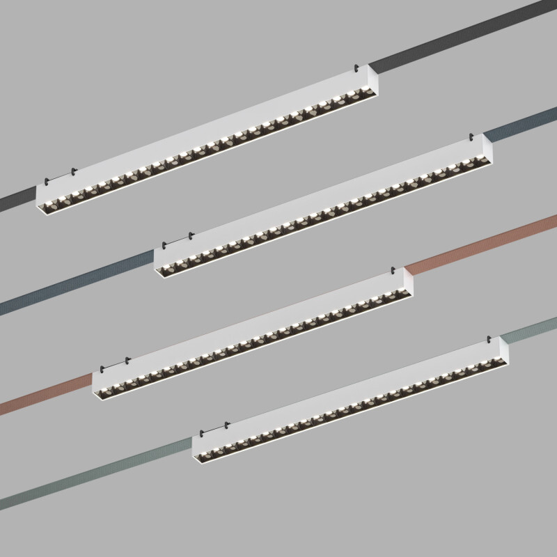 DK5572-WB Cветильник для трека-ремня Belty, серия Grill, со светодиодом, L642*W40*H45мм, 48V DC, 24W, RA90, 24°, 4000K, IP20, белый с черным, алюминий